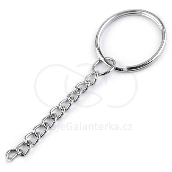 Kroužek na klíče, Ø25 mm, s řetízkem, nikl