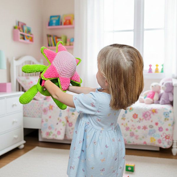 Háčkovaná Květina Divnokvět je originální návod na hravou květinovou postavičku, která spojuje jemnost květu s roztomilým charakterem a je ideální jako ručně vyráběná dekorace, dárek z lásky, doplněk do dětského pokoje nebo milá pozornost pro každého, kdo má rád háčkování a jedinečné handmade kousky.