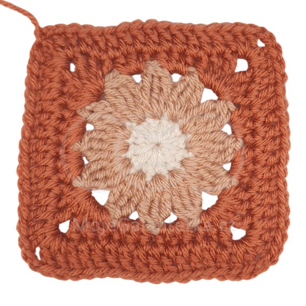 Rozzáříte své háčkované projekty originálním motivem květiny. Tento návod vás krok za krokem provede výrobou nádherného háčkovaného čtverce se slunečnicí, který se skvěle hodí jako dekorace na deky, povlaky na polštáře, tašky, přehozy nebo jako samostatný ozdobný motiv. Kombinace hnědého středu, okrových okvětních lístků a smetanového rámečku působí přírodně, teple a přitom elegantně.
