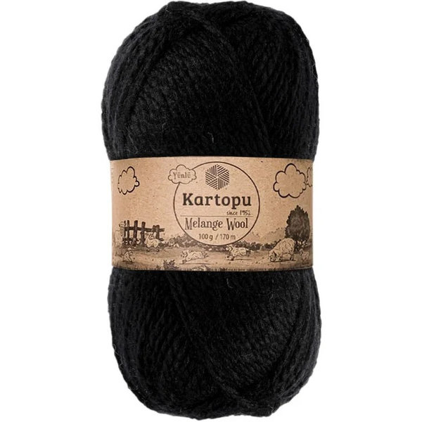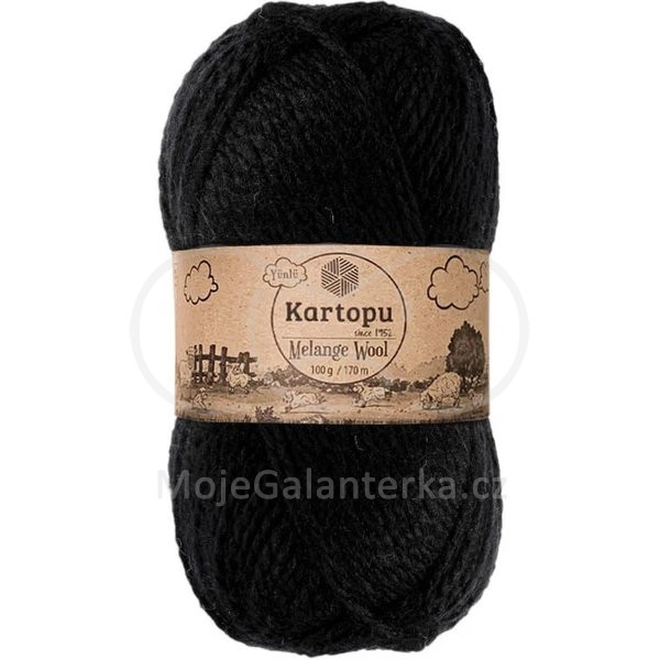 Příze Melange Wool,  K940, černá Příze Melange Wool,  K940, černá Příze Melange Wool,  K940, černá
