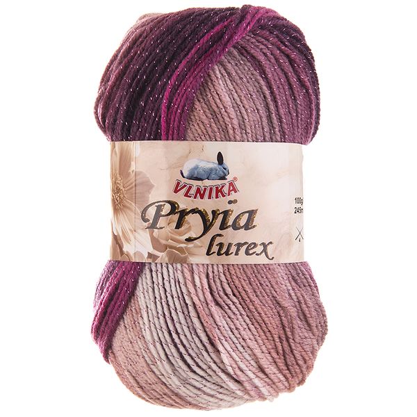 Příze Pryia Lurex – samovzorovací akrylová příze obohacená o elegantní lurexovou nit, která vašim výrobkům dodá jemný lesk. Skvěle se hodí na pletení i háčkování čepic, dek, svetrů či šál. Je příjemná na dotek, měkká, lehká a snadno se s ní pracuje, což z ní dělá ideální volbu pro každého, kdo touží po krásných a originálních výsledcích. Dodejte svým projektům šmrnc s přízí Pryia Lurex.