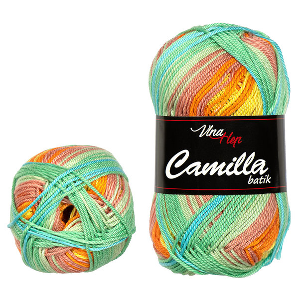 Bavlněná pletací příze Camilla Batik je nejprodávanější letní přízí na našem trhu. Vyznačuje se vysokou jemností, pro kterou si ji všichni oblíbili zejména pro háčkování hraček.