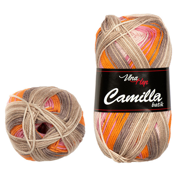 Bavlněná pletací příze Camilla Batik je nejprodávanější letní přízí na našem trhu. Vyznačuje se vysokou jemností, pro kterou si ji všichni oblíbili zejména pro háčkování hraček.