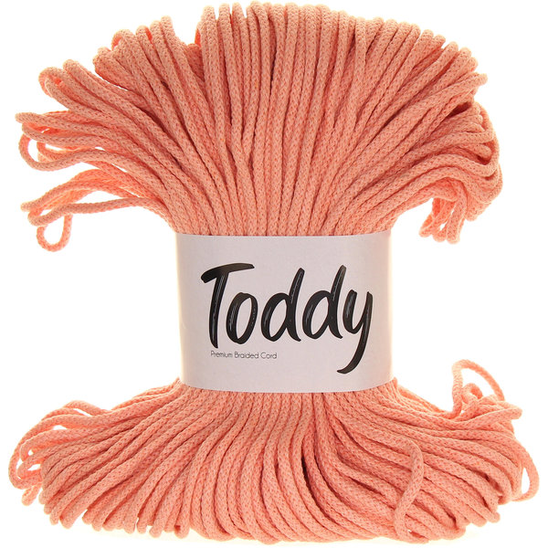 Příze Toddy Premium 3mm je pevná a hladká bavlněná šňůra, která se nerozčesává a nabízí precizní, čistý a elegantní vzhled každého projektu. Vyrobena z recyklované bavlny, je šetrná k přírodě a ideální pro všechny, kdo hledají kvalitní, spolehlivý a estetický materiál pro své ruční tvoření.